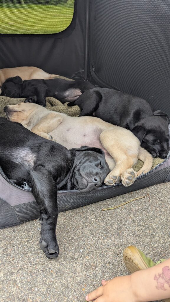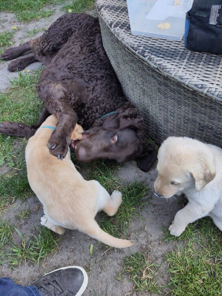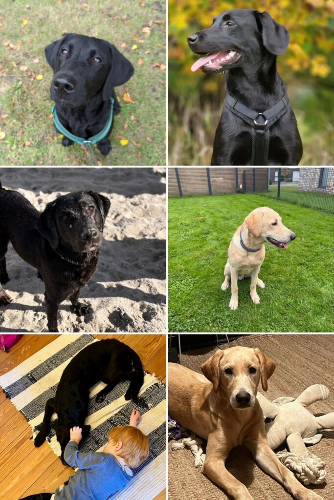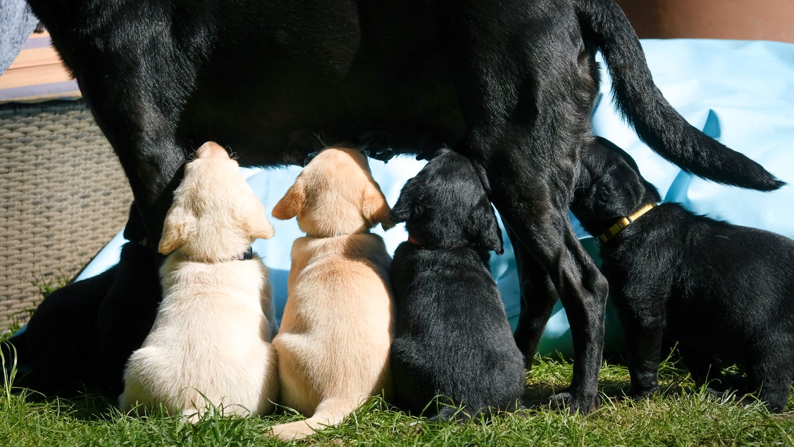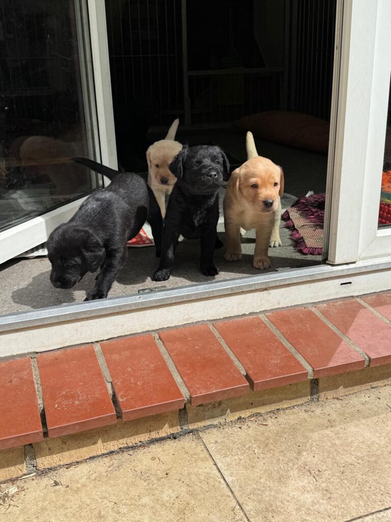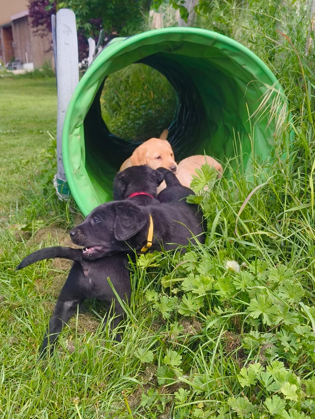 2 Rüden (1 gelb und 1 schwarz) und 3 Hündinnen (1 gelb und 2 schwarz)
