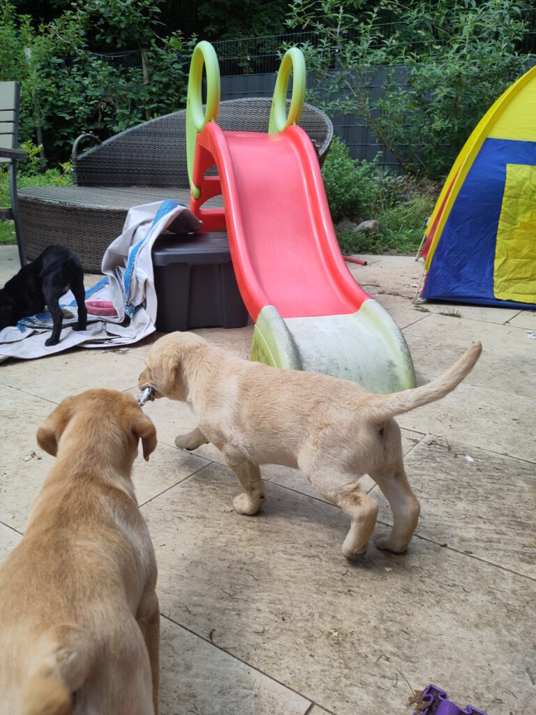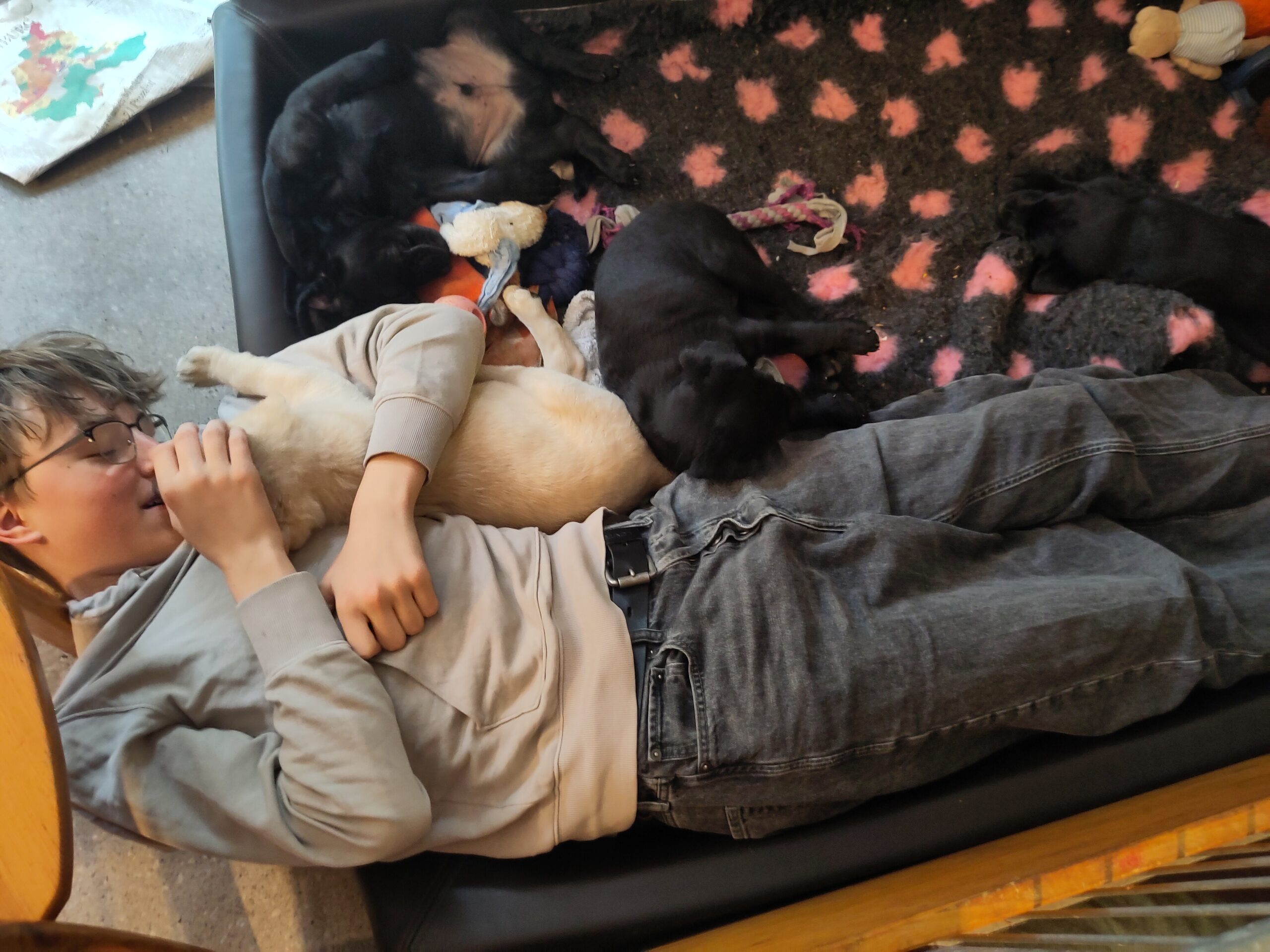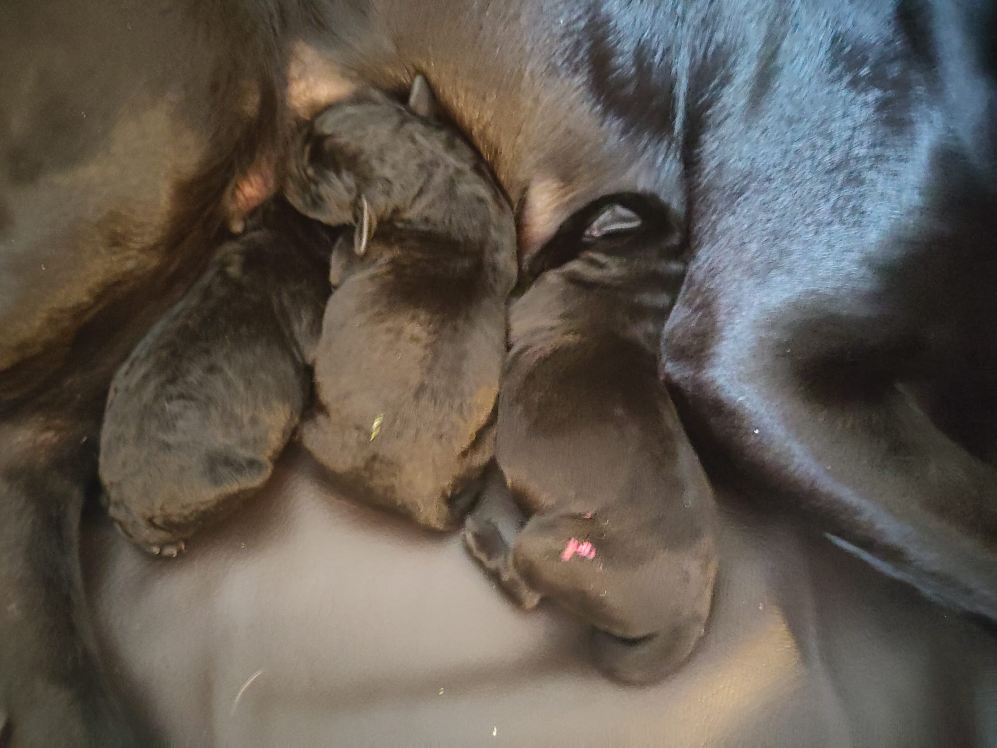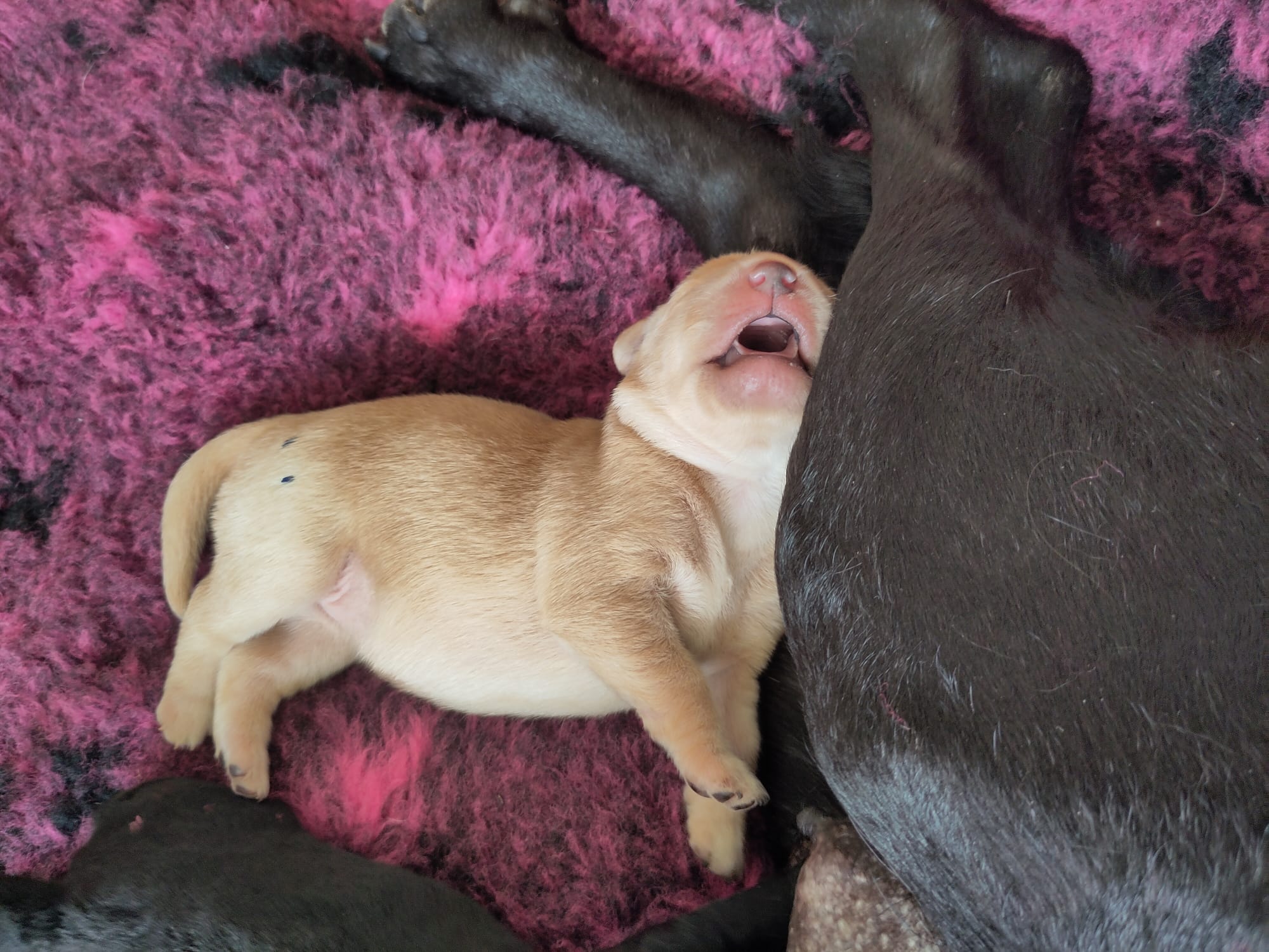 2 Rüden (1 gelb und 1 schwarz) und 3 Hündinnen (1 gelb und 2 schwarz)
