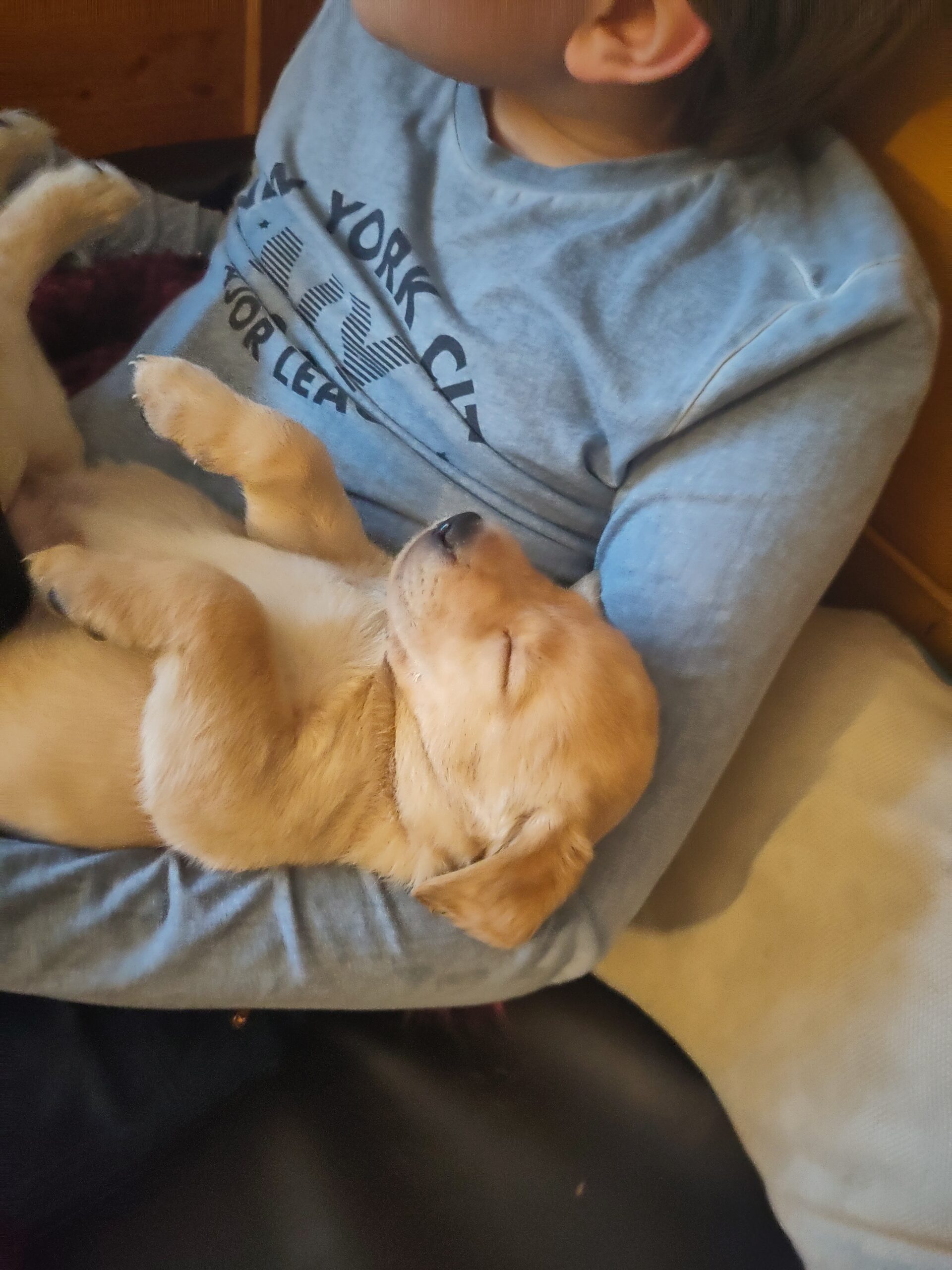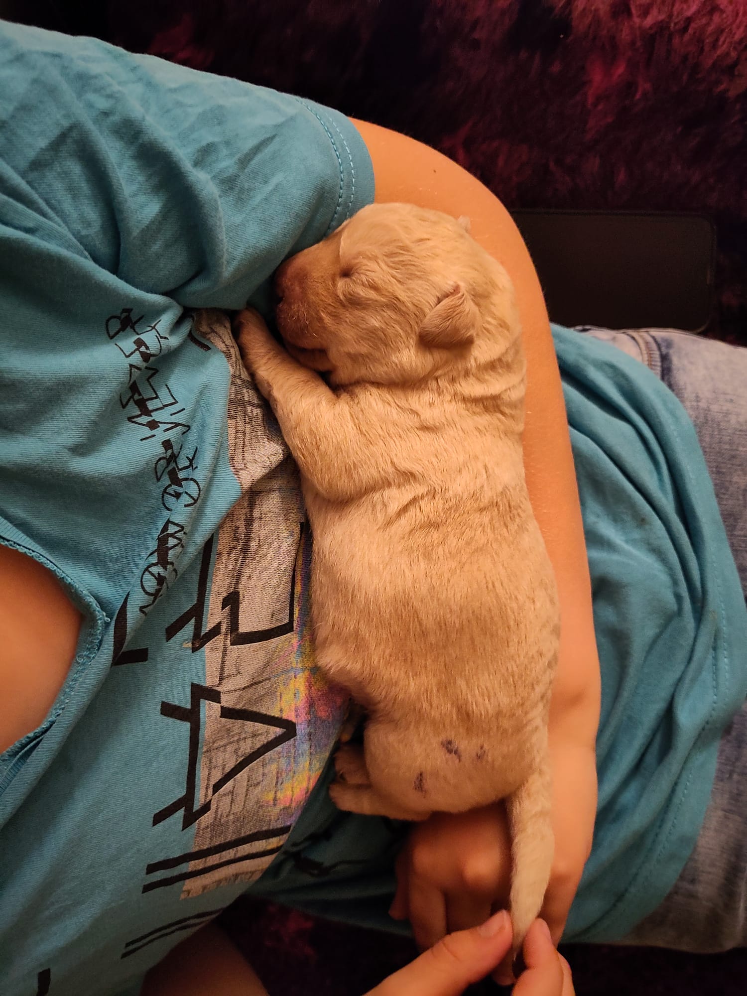 Leider hat es ein gelber Rüde nicht geschafft, er steckte fest und daher war nach 4 Welpen noch ein Kaiserschnitt nötig. Der letzten kleinen Hündin konnten wir so aber auf die Welt helfen. Fee hat sich noch in der Aufwachphase schon wieder um die Zwerge gekümmert und wir sind sehr froh, dass die Fünf alle gesund und munter sind. Vielen, vielen Dank auch an das ganze Team der Kleintierpraxis Niendorf für die großartige Betreuung!